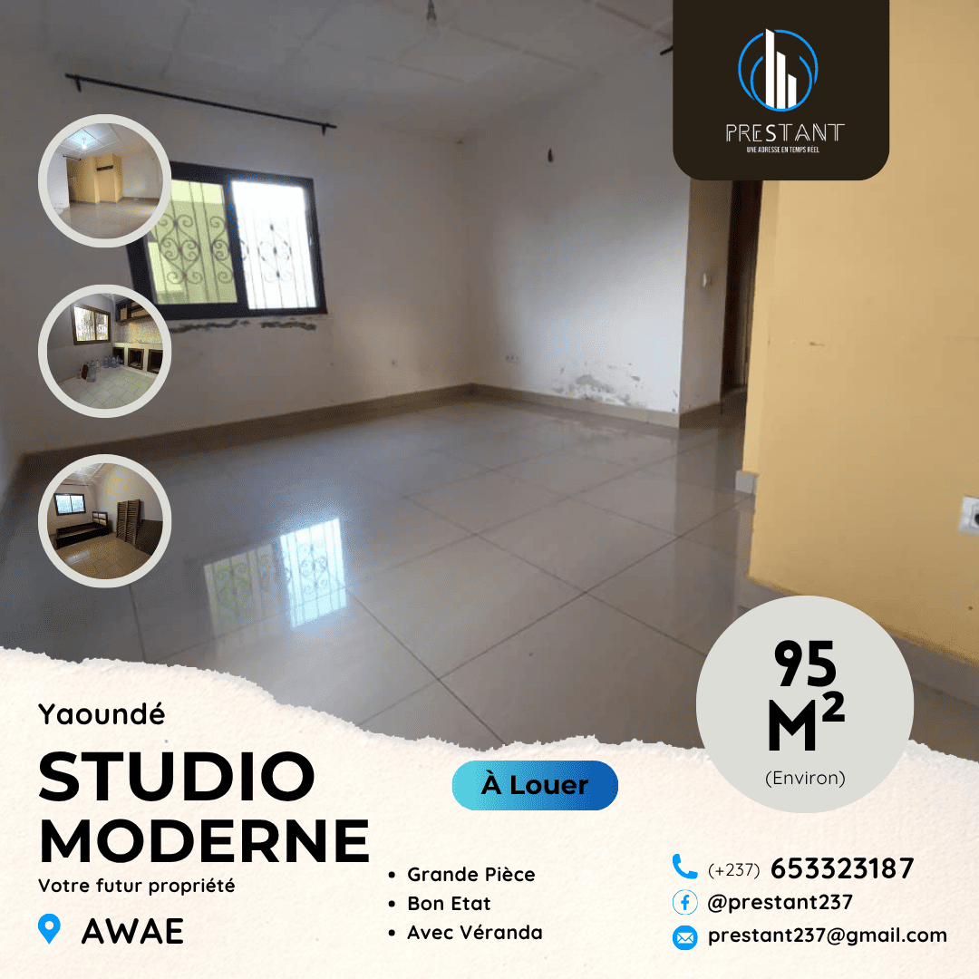 Joli Studio Moderne à louer à Awae Escalier – Situé Monti – 100FCFA à Moto – Salon – Cuisine – Chambre – Douche Prix Mensuel : 50.000FCFA Avance Demandé :…